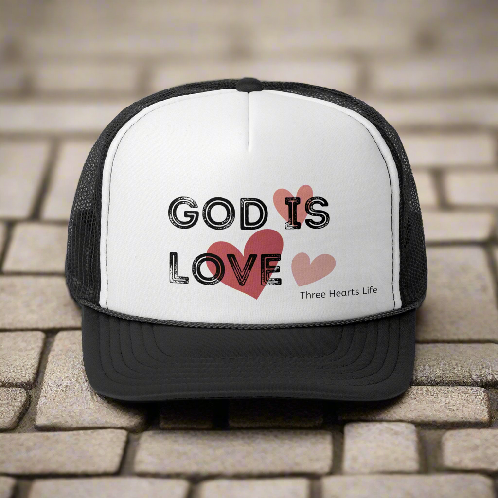 God is Love! Wear and share this great message with our super cute, quality trucker caps!